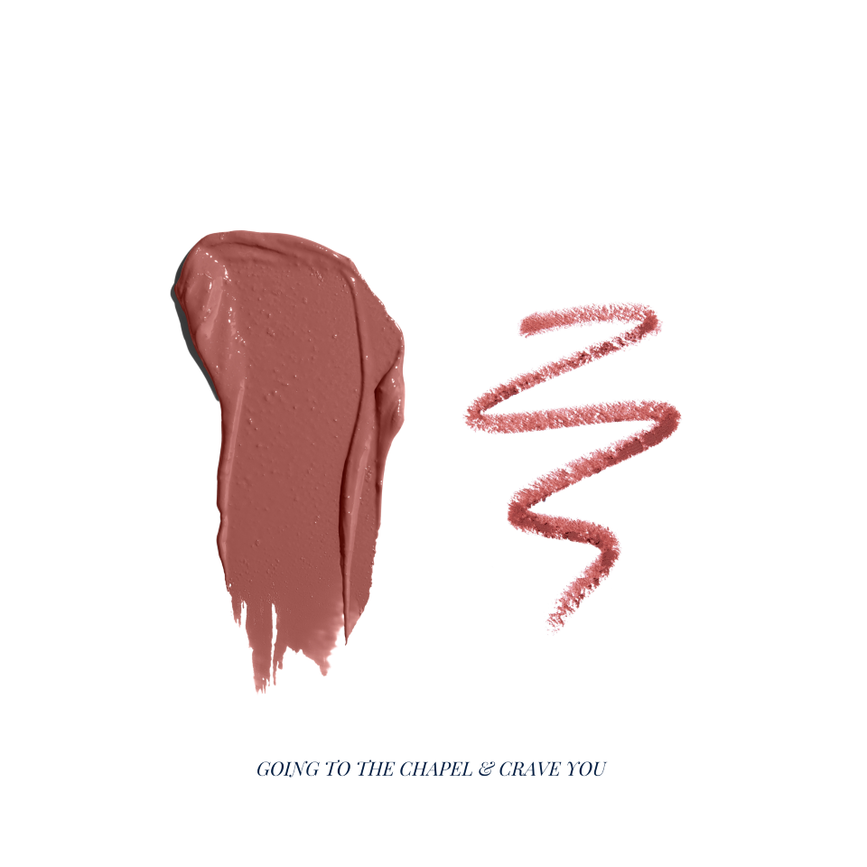 Our flattering 'Going to the Chapel Lipstick' paired with our 'Crave You Lipliner' at a special bundled price.